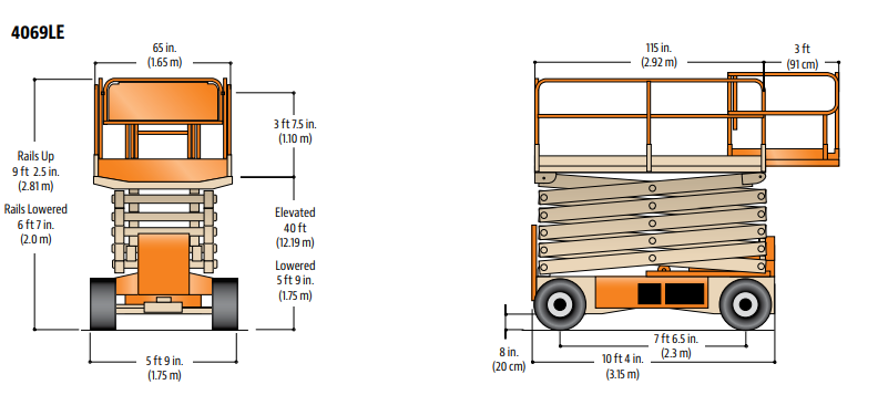 40 ft / 12.19 m800 lb / 362.87 kg5 ft 9 in. / 1.75 m