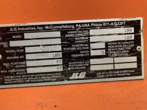 Unit: #2790 Platform Height: 65 ft 8 in. / 20.02 m Platform Capacity Restricted: 750 lb / 340.19 kg Platform Capacity Unrestricted: 550 lb / 249.48 kg Horizontal Outreach: 57 ft 1 in. / 17.4 m NDT: 2019
