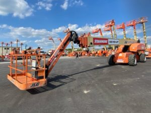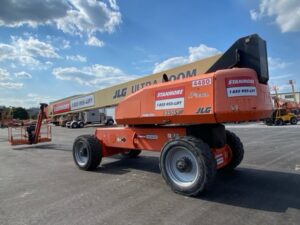 Dominate the job site with JLG® Ultra Series telescopic boom lifts. When you’re working twelve stories high or more, you want a telescopic boom lift that’s built to perform, and that’s exactly what you get with the Ultra Series. These telescoping lifts were designed for rugged job sites like steel mills, chemical plants, airports, shipyards and heavy construction. They feature an ultra strong 100,000 PSI steel boom, giving you the confidence and support you need to handle 1,000 lb of capacity. And their exclusive controlled arc regulates speeds at the edges of the work envelope, so you feel the same velocity in all positions for enhanced comfort.