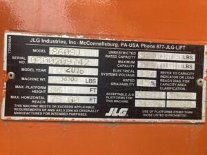 Unit: #3173 Platform Height: 86 ft in Platform Capacity: 500.5 lb Horizontal Outreach: 75 ft in