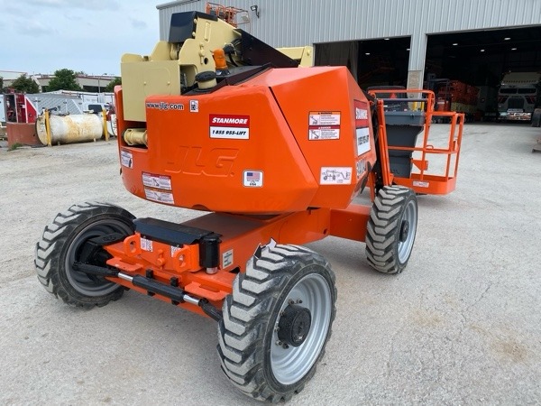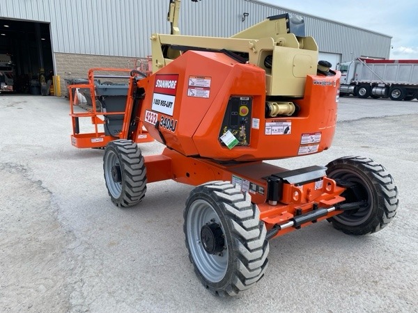 The JLG 340AJ is a compact, versatile articulated boom lift designed to provide excellent working height and outreach in tight spaces. With a maximum working height of 40 feet (12.2 meters) and an impressive horizontal outreach of 20 feet (6.1 meters), the 340AJ is ideal for indoor and outdoor applications, particularly when maneuverability is crucial.