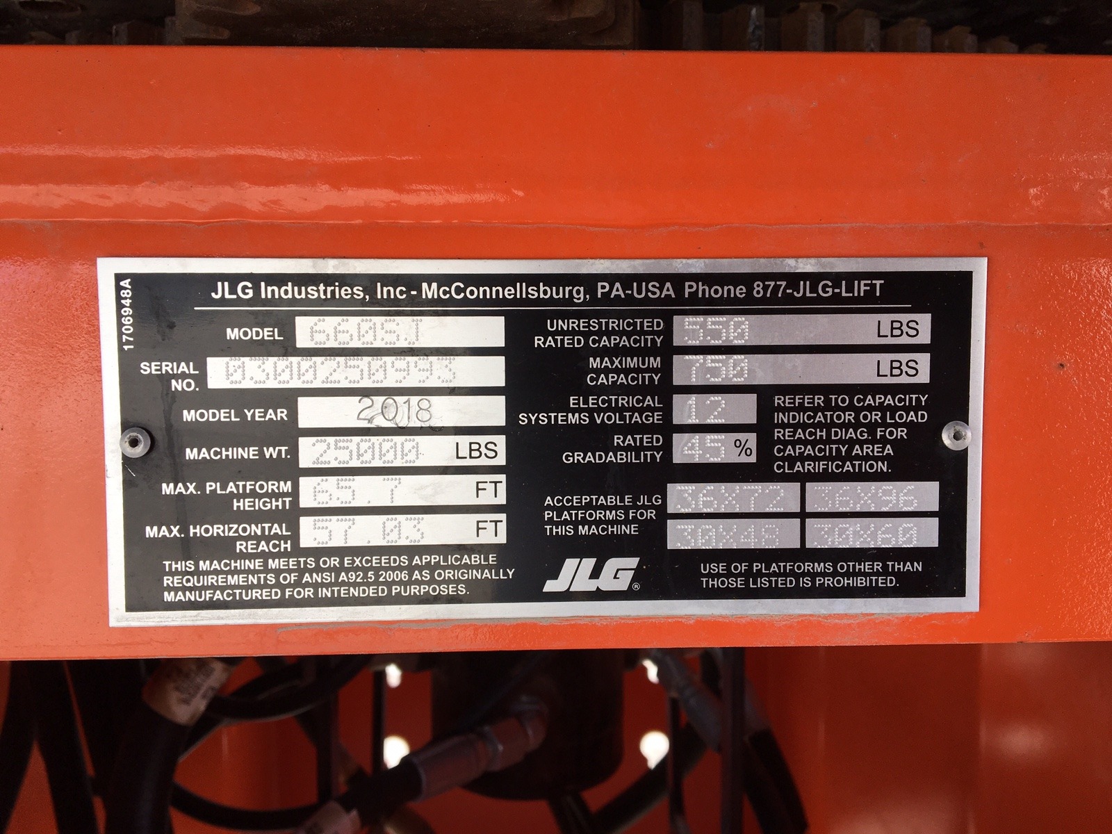 • Platform Height: 65 ft 8 in. / 20.02 m