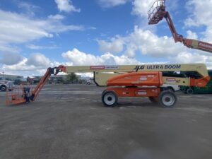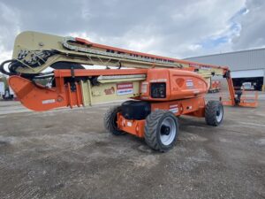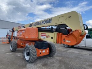 For big jobs that demand both height and reach, the exclusive QuikStik Boom on the 1250AJP lets you go from full elevation to the ground in 115 seconds for maximum productivity. This articulating lift offers surprising mobility, a tight turning radius and crab steer in an ultra-sized package with a standard oscillating axle for improved traction on uneven surfaces.