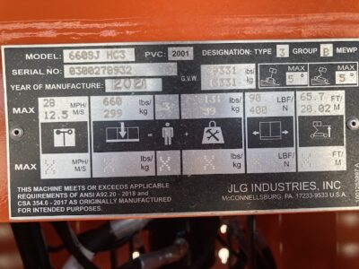 • Platform Height: 65 ft 8 in. / 20.02 m