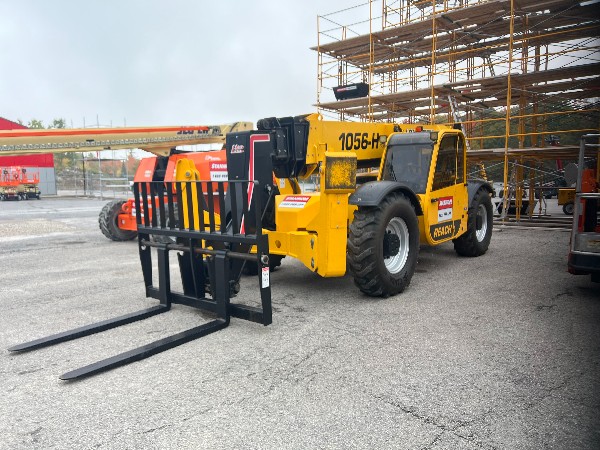 The 1056-G has a 10,000 lbs. capacity and an overall lift height of 56 feet. The 1056 offers superior performance and unmatched operator visibility. Fast, responsive hydraulics make the Reach series an industry leader in job site material handling.