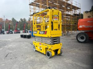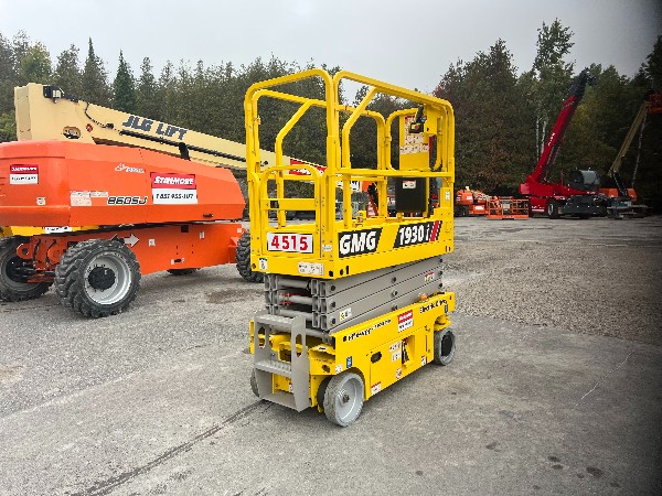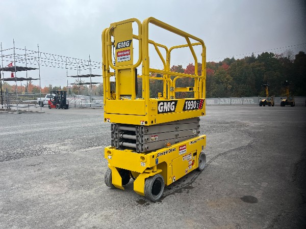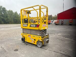 GMG’s primary compact electric slab scissor lift in this size class is the 1930-ED (or 1930i), which features a 30-inch (76 cm) wide chassis.