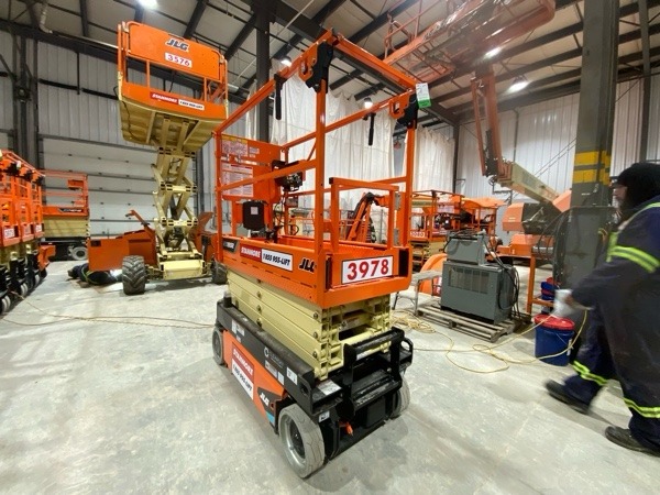 The JLG ES1932 delivers double the battery life of a standard scissor. The QuikFold rail system allows operators to fold the rails in a fraction of the time compared to other machines.