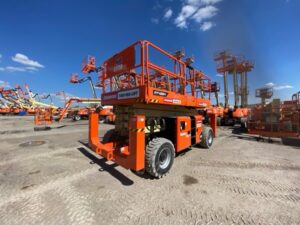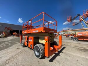 JLG® engine powered scissor lifts are chosen for applications that require more workspace and more lifting capacity. The LRT Series and RT Series both provide a larger work area and generally higher load capacities than boom lifts. Both deliver exceptional terrainability and gradeability, making it easier to maneuver through the roughest job sites.