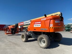 600 Series telescopic boom lifts have a powerful combination of performance and reliability so you can conquer all your worksite challenges. Lift heavier loads with increased platform capacities and improve your access to overhead tasks with enhanced horizontal outreach. Mud, sand and rough terrain are no match for the standard oscillating axle and 45% grade climbing ability on a 600 Series telescopic boom lift. Plus, our Hi-Capacity telescoping lifts allow you to push the envelope without compromise, offering three capacity zones, each rated for three occupants and tools.