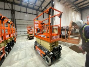 The JLG ES1932 delivers double the battery life of a standard scissor. The QuikFold rail system allows operators to fold the rails in a fraction of the time compared to other machines.