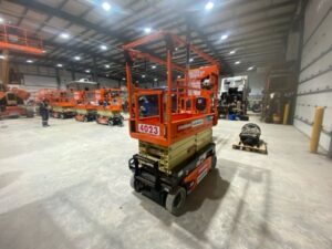 The JLG ES1932 delivers double the battery life of a standard scissor. The QuikFold rail system allows operators to fold the rails in a fraction of the time compared to other machines.