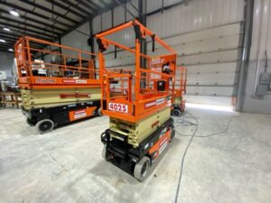 The JLG ES1932 delivers double the battery life of a standard scissor. The QuikFold rail system allows operators to fold the rails in a fraction of the time compared to other machines.