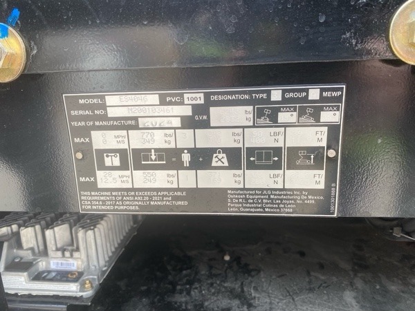 Unit: #4077 Maximum Drive Height: 39.1 ft / 11.92 m Platform Capacity: 770 lb / 349.27 kg Platform Capacity: 250 lb / 113.40 kg Turning Radius: Outside – 7 ft 10 in. / 2.4 m