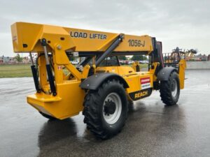 The 1056-G has a 10,000 lbs. capacity and an overall lift height of 56 feet. The 1056 offers superior performance and unmatched operator visibility. Fast, responsive hydraulics make the Reach series an industry leader in job site material handling.