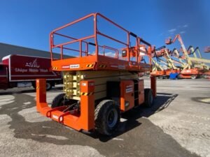 JLG® engine powered scissor lifts are chosen for applications that require more workspace and more lifting capacity. The LRT Series and RT Series both provide a larger work area and generally higher load capacities than boom lifts. Both deliver exceptional terrainability and gradeability, making it easier to maneuver through the roughest job sites.