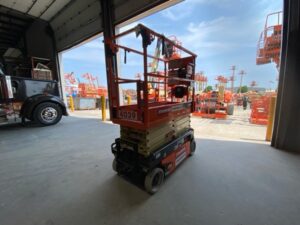 The JLG ES1932 delivers double the battery life of a standard scissor. The QuikFold rail system allows operators to fold the rails in a fraction of the time compared to other machines.
