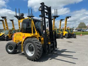 The 2200-2400 series offers a full range of features that meet the needs of most industries today. Available in both 2 and 4-wheel drive, this model of forklift was designed around the operator and includes unparalleled visibility and modern machine ergonomics. Advanced vibration and sound-deadening technologies were used during the design process to provide quiet, smooth performance. A full range of C-Thru masts is offered giving this series a wide range of applications.
