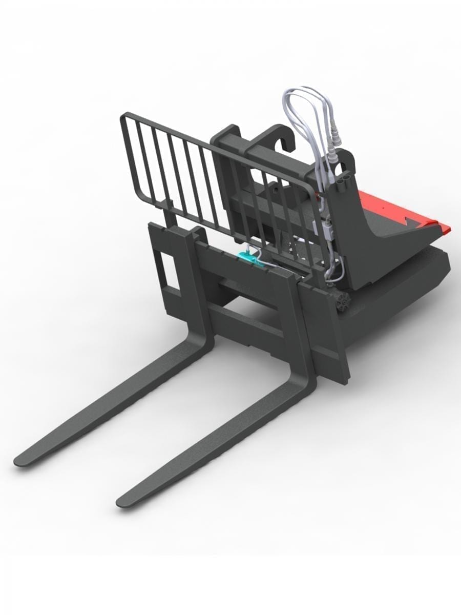 Fork rated at 2.5 tonnes with FEM fork holder plate, highly versatile thanks to the +/- 90 ° rotation. Protective grille to increase the height of the handled pallets. Dovetail housing joints for simpler fork positioning.